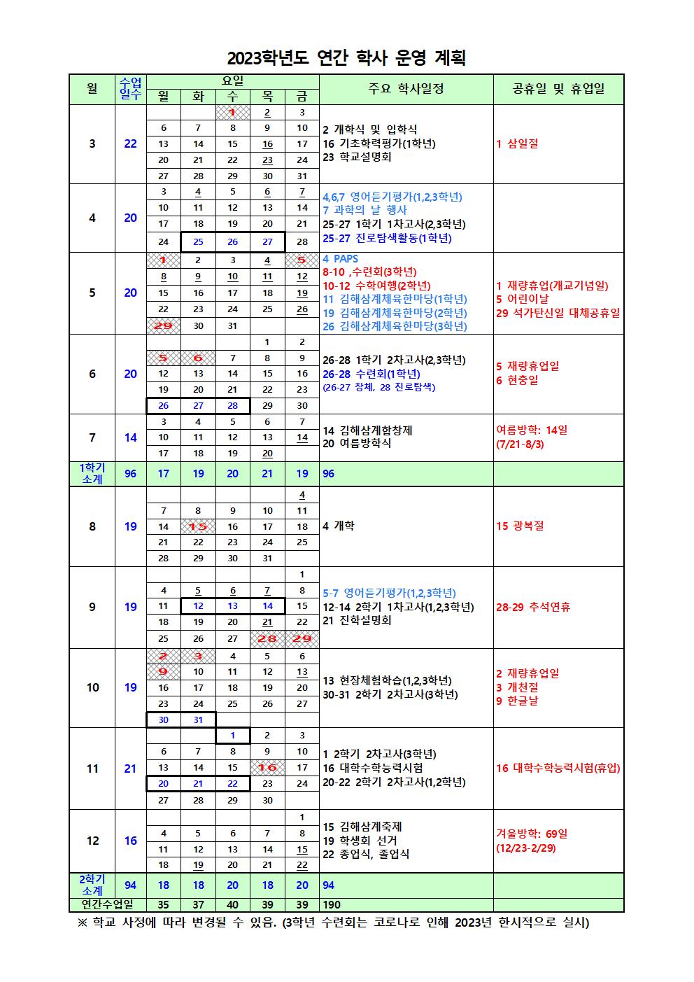 2024학년도 일과운영 및 학사일정 안내