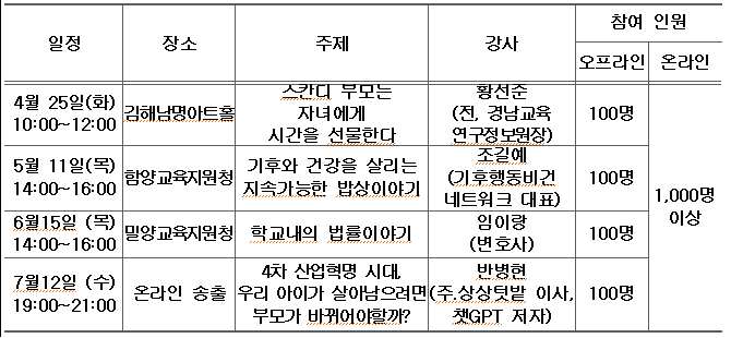- 참여 방법: “경남학부모TV”유튜브 채널에서 시청(교육 당일 접속 링크 문자발송)